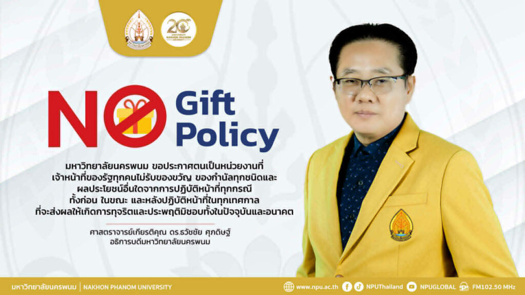 อธิการบดี ม.นครพนม มอบนโยบาย “No Gift Policy” ไม่รับของขวัญและของกำนัลทุกชนิด ประจำปีงบประมาณ พ.ศ. 2569